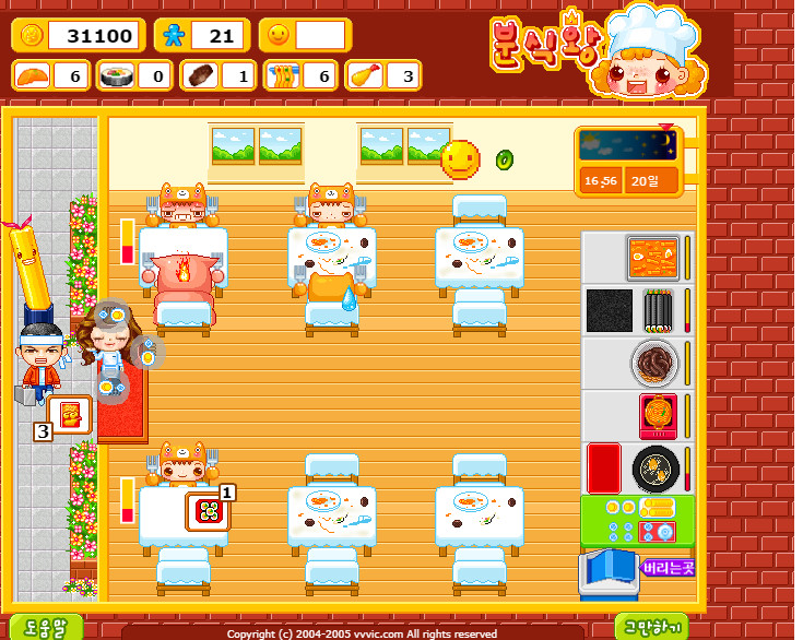 또한 손님들이 먹고 간 자리는 반드시 깨끗하게 청소를 해줘야 합니다 생각보다 속도가 빨리진행 되기 때문에 게이머의 실력에 따라서 그리 어렵지 않게 플레이가 가능합니다