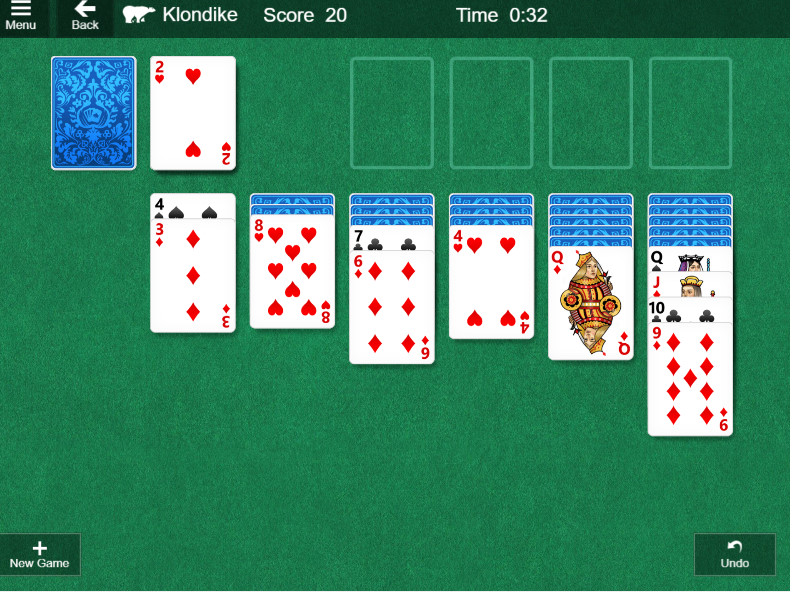 이 윈도우 카드게임에 몇가지 팁을 드리자면 위쪽에도 뒤집힌 카드들이 있는데 이 카드들을 우선적으로 배치하는 것 보다는 밑에 뒤집혀 있는 카드들을 전부 까두는 것이 좋습니다 왜냐하면 위쪽에 있는 것들은 언제든지 이동이 가능하지만 하단에 있는 것들은 그 위에 다른 카드가 이동하기전까지는 뒤집을 수가 없게 되어버립니다